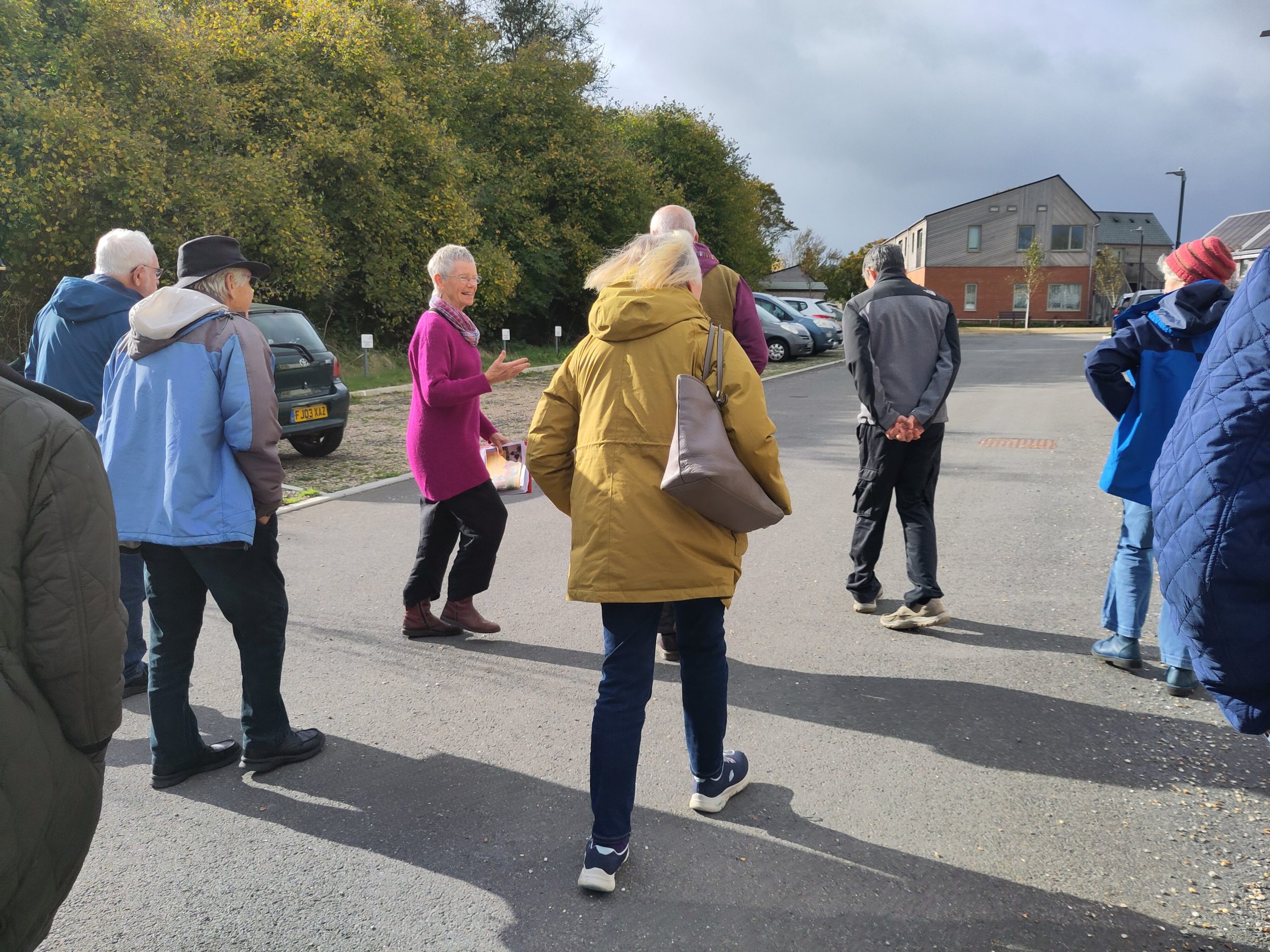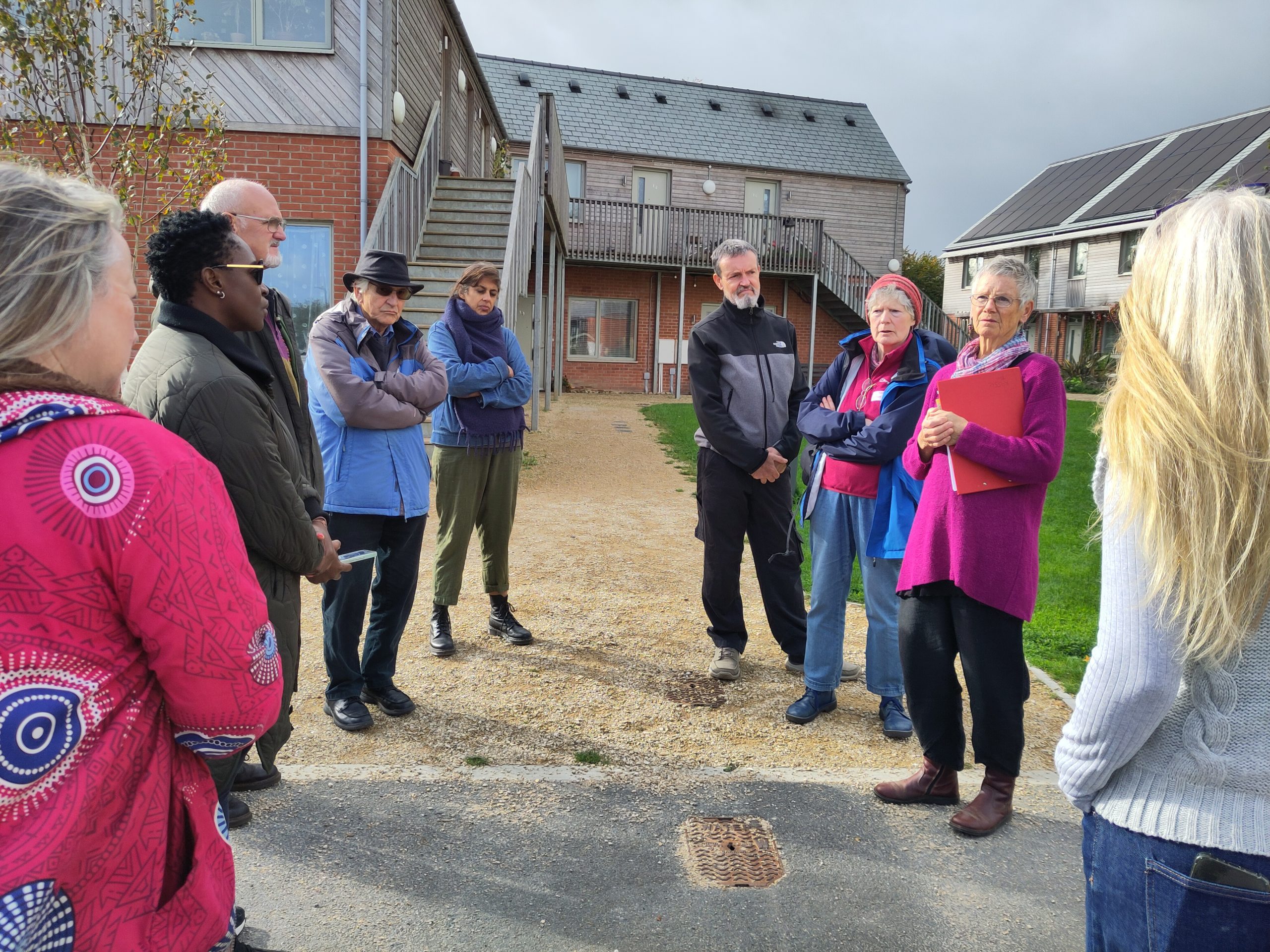 After our morning workshop (and a lot of chatting over a delicious lunch!), it was time to make our visit to Bridport Cohousing CLT’s Hazelmead project.
